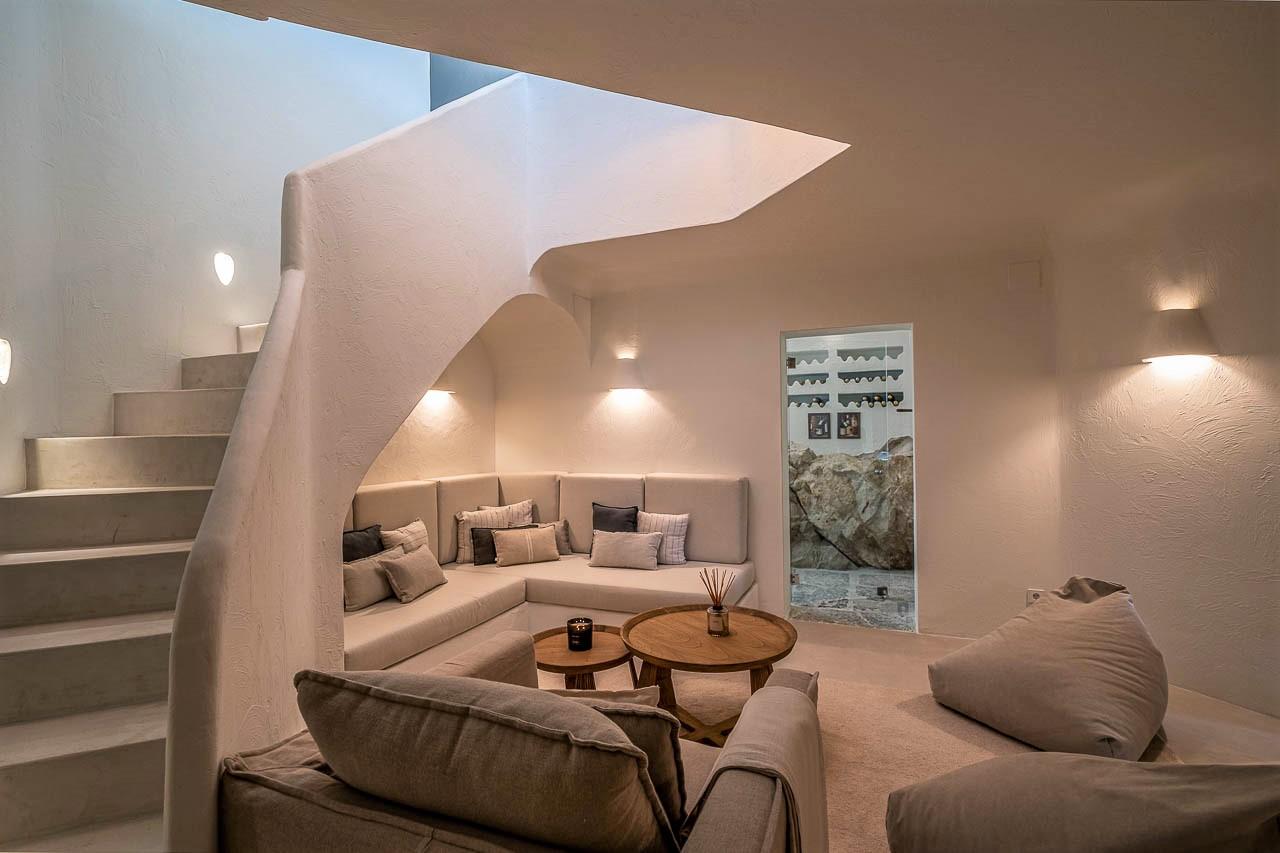Constructed over three levels, the Villa Amor holiday home is fully air-conditioned. Its living room invokes a sense of serenity, with a sophisticated decor inspired by the refinement of beige hues. Decorated with comfortable sofas, the living room invites you to delight in enjoying the outdoor views. The feeling of purity reigns in this restful stay.