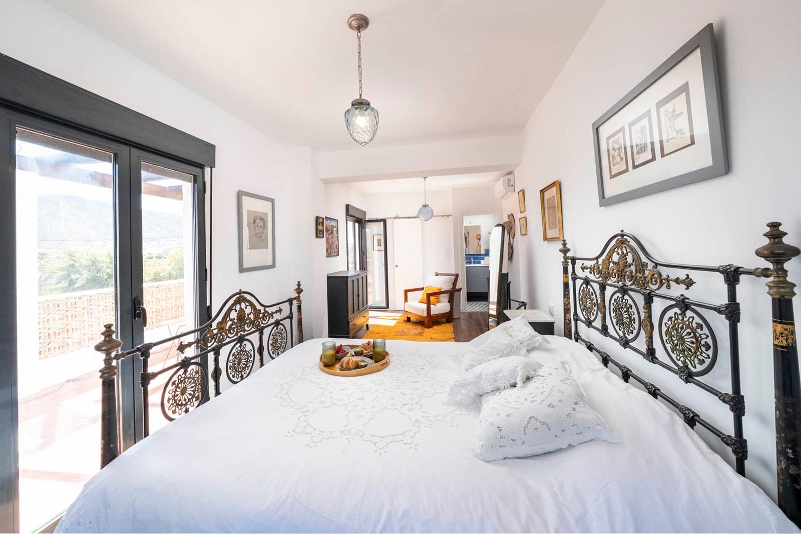 Double bed, en-suite bathroom with shower and WC, access to a private terrace with views of the garden and the pool.