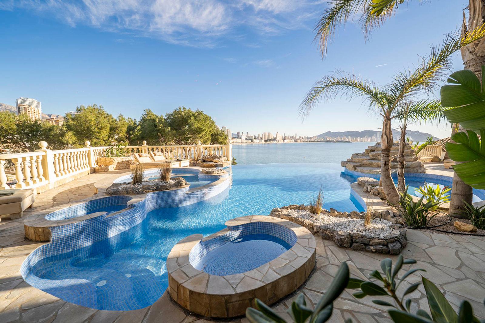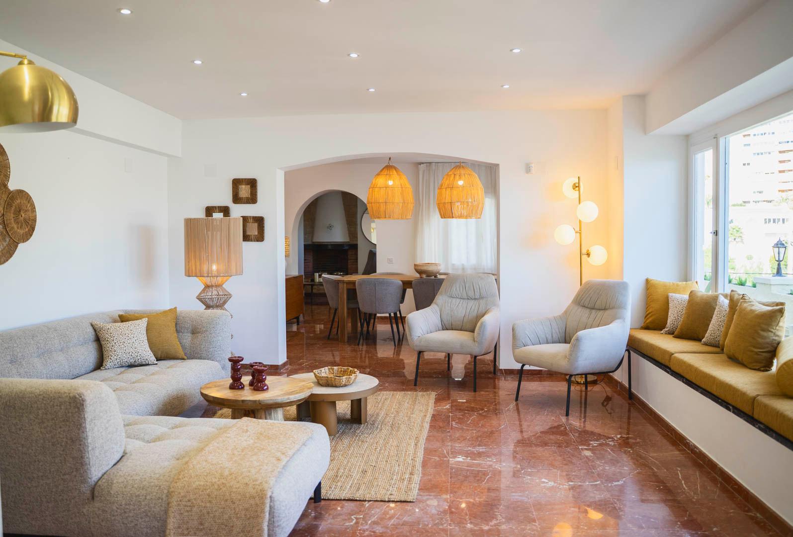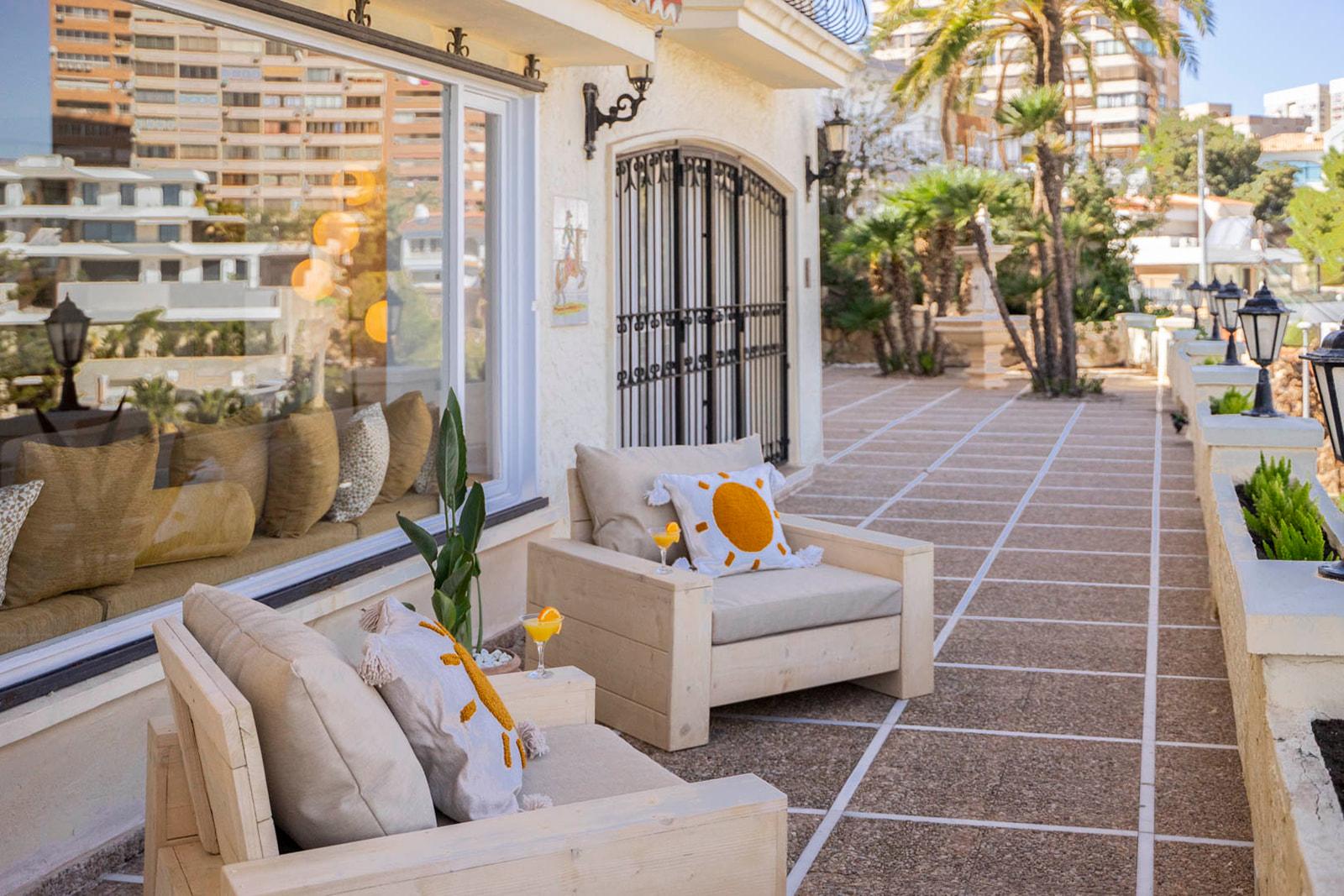 Enclavada en las alturas de la playa de Poniente, esta elegante villa de alquiler ofrece impresionantes vistas al mar, a la playa y a la ciudad. Perfectamente adaptada para grandes grupos, Casa Playa es una dirección de referencia para estancias en la Costa Blanca.