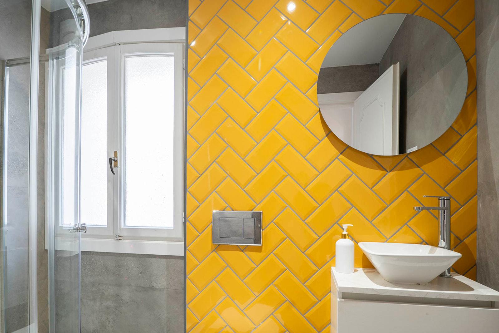 Dormitorio con cama tamaño queen, baño en suite con ducha, lavabo, acceso directo a la terraza.